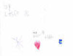 Leslie drew these in late Fall 2006 just before her ETV (sim. to shunt) surgery for Hydrocephalus. Because of the hydrocephalus, she had been in a fairly unresponsive state for several days. She had facial paralysis and significant weakness on one side. Her balance was significantly impaired. She woke up one Friday morning and asked that I help her to the kitchen table and give her some paper and colored pencils. This was extremely odd behavior at the time because she had rarely left the sofa on the previous days. She had not asked to draw, paint or color for weeks prior to this due to her impaired motor skills. When she did get up, it was for very brief periods just to eat or go to the bathroom. She proceeded to draw multiple pictures for a couple of hours. Each time I asked her what she was drawing she would cover them up and say "go away Mom, I'm not finished". We were amazed after we saw them. We had not been able to attend church or any worship activities since the summer due to Leslie's condition. Although we are strong believers and are faithful people, we don't carry on conversations like this at home. Therefore, the subject of Jesus had not been in the forefront of her mind for any reason. The next day (Saturday), she woke up and did the exact same thing producing another set of very similar drawings.